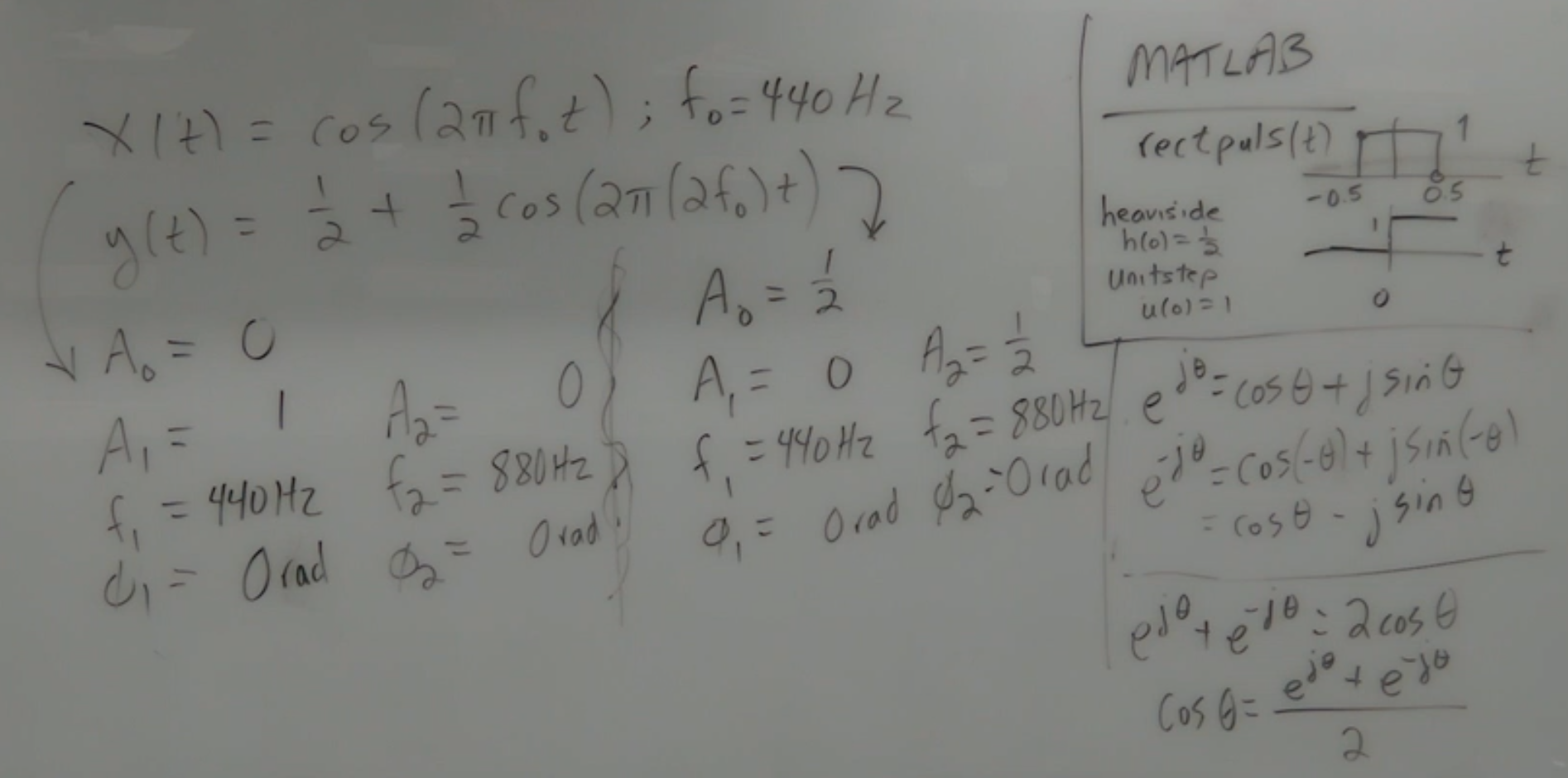 y(t) = (1/2) + (1/2) cos(2 pi (880) t) by using the trigonometric identity for